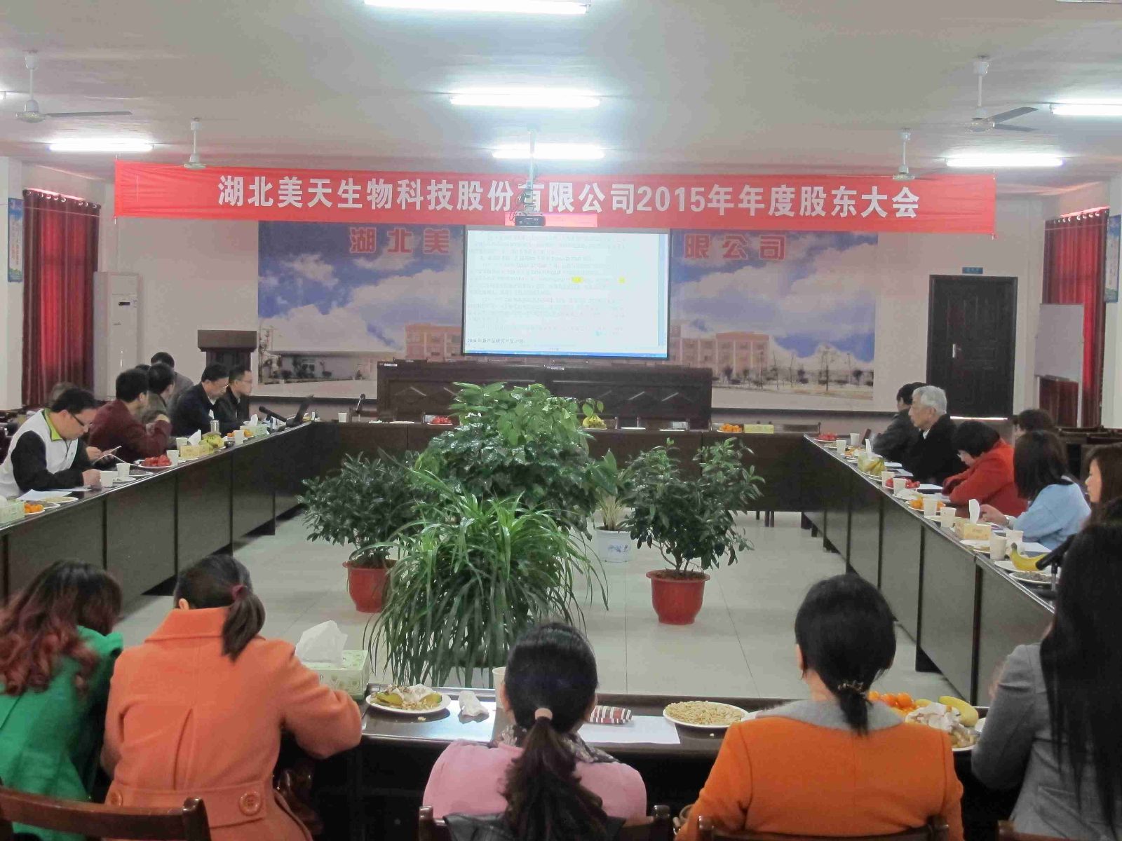 2016年3月7日,湖北美天科技股份有限公司在总部四楼会议室隆重召开2015年年度股东大会,应到股东45人,实到股东37人,因事缺席8人,董事会成员,监事会成员出席了会议,会议由公司董事长彭要武主持,武汉诚明律师事务所张伟、张应波两位律师应邀参加了会议。